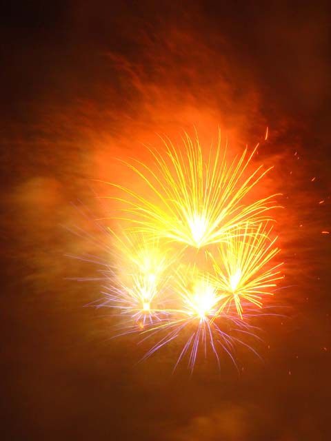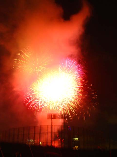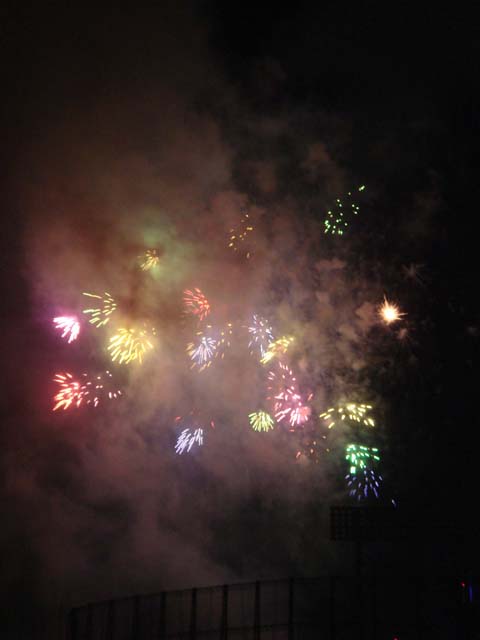 「花火の打ち上げは19:30からです。それまでアトラクションでお楽しみ下さい」