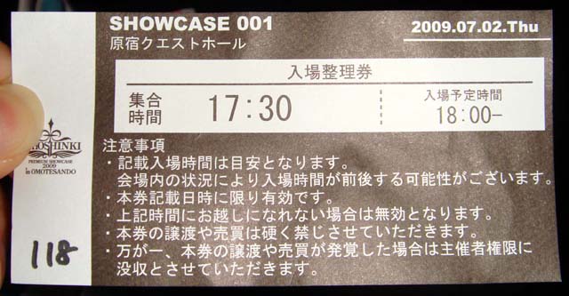 グッズが売り切れたり時間がオシ過ぎて諦めて帰っちゃった人が多かったみたいで、流れがちょっと速くなった。もうすぐ入れますとの事。